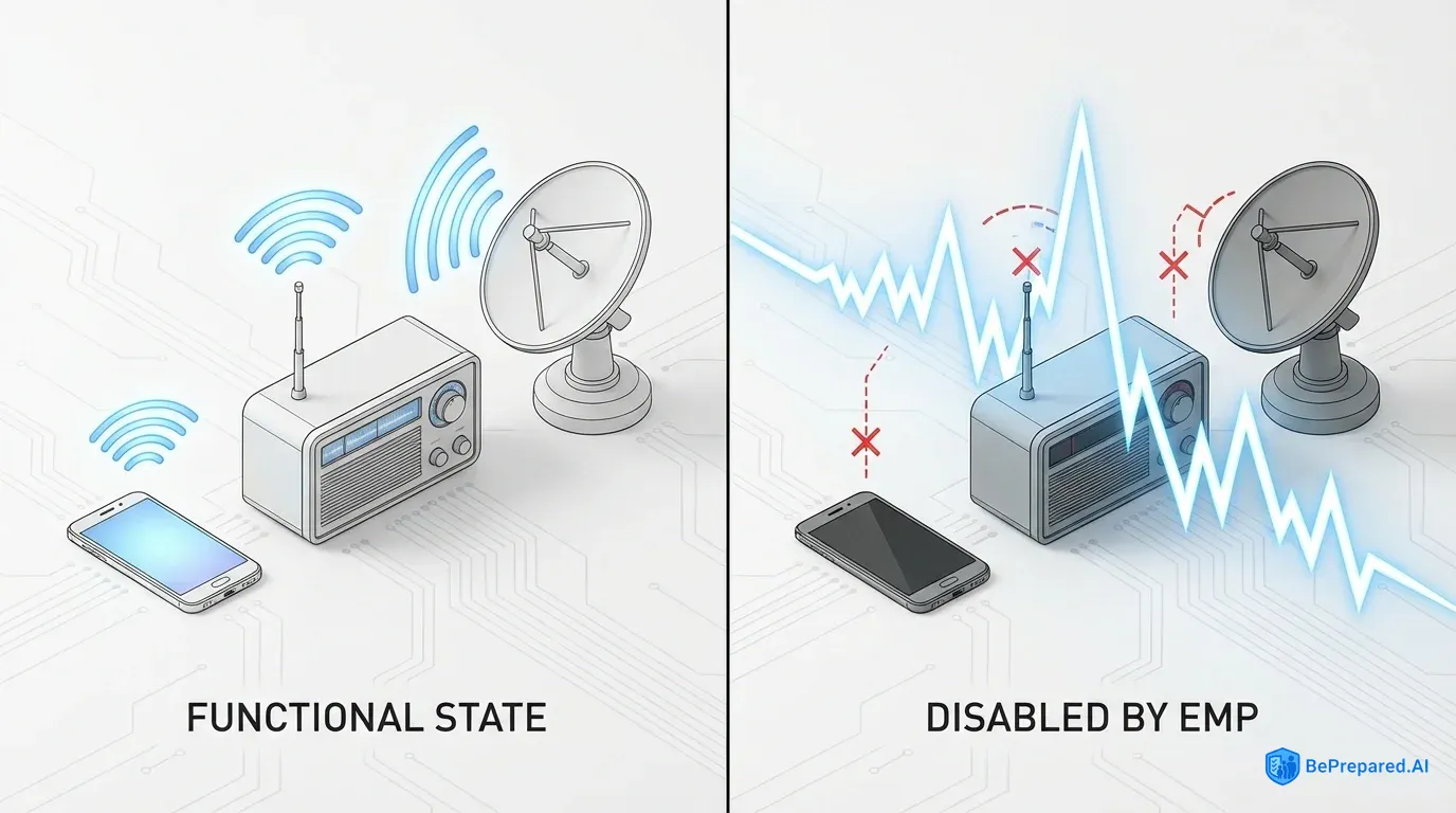 Most ham radios fail within nanoseconds of an EMP strike. Technical analysis of hardened transceivers, Faraday protection, and semiconductor vulnerabilities for serious preparedness.