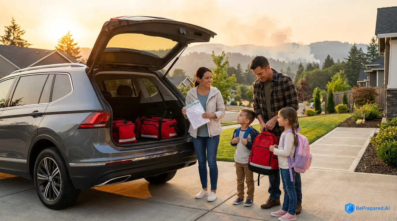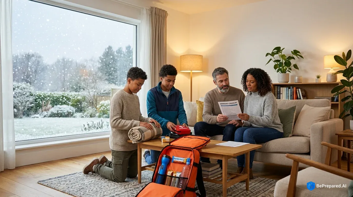 Natural disasters including hurricanes, wildfires, tornadoes, earthquakes, floods, and winter storms. Select sub-scenarios for targeted preparation advice.