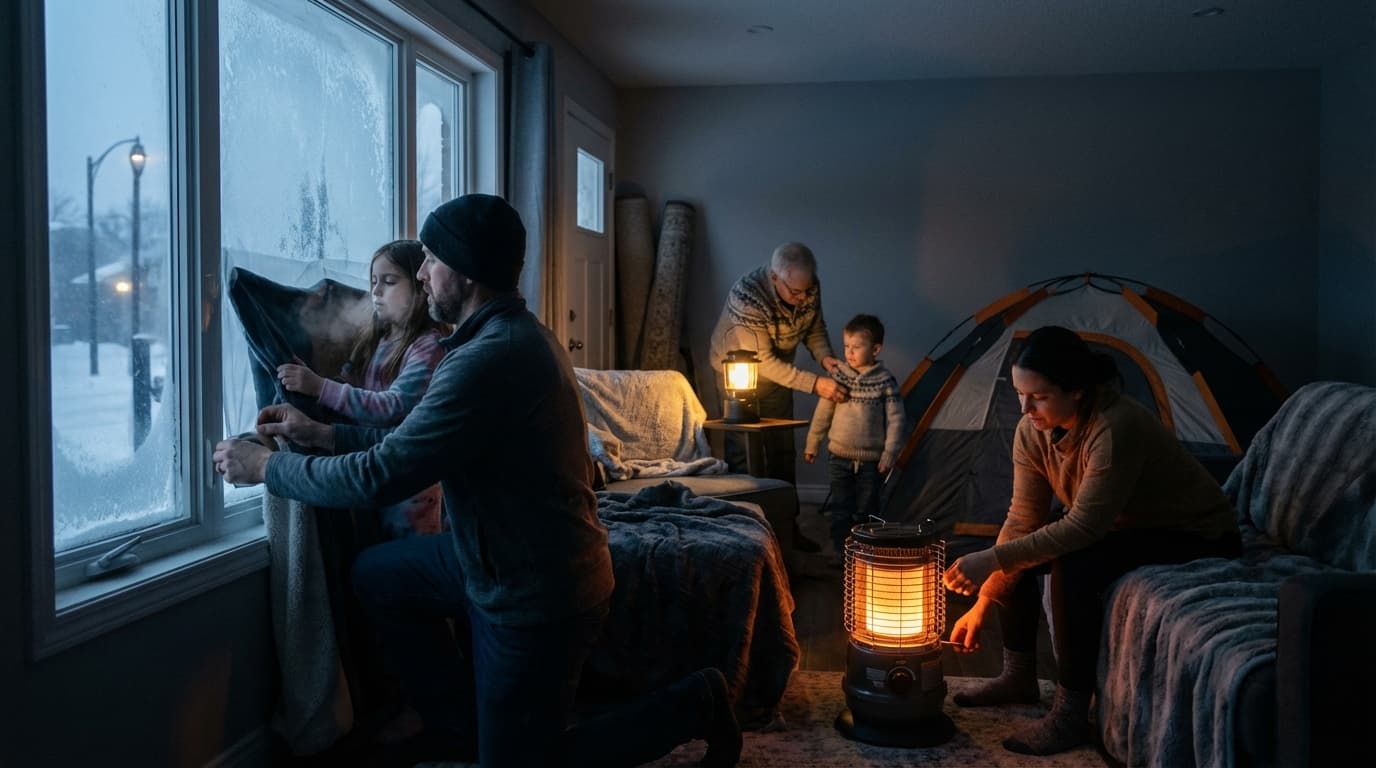 Loss of heating or air conditioning during extreme temperatures. Requires alternative heating/cooling methods and insulation strategies.